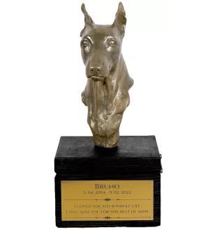 Pinscher nain - une urne avec une gravure et une sculpture de chien, un dernier adieu, un produit fait à la main de la marque Art-Dog