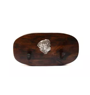 Ce porte-chien en bois est un accessoire unique fabriqué à la main, conçu pour ajouter fonctionnalité et élégance à un intérieur. Le style classique s'exprime dans la combinaison du bois de pin et du relief du chien, plaqué argent et travaillé de manière complexe. Le cintre peut être utilisé comme un cintre traditionnel, mais aussi comme un porte-laisse et d'autres accessoires pour chiens, comme un présentoir pour les médailles gagnées lors d'une exposition canine ou comme un crochet pour les clés. Son utilisation polyvalente parle d'elle-même - il s'agit d'un cadeau vraiment pratique pour tout amoureux des chiens !