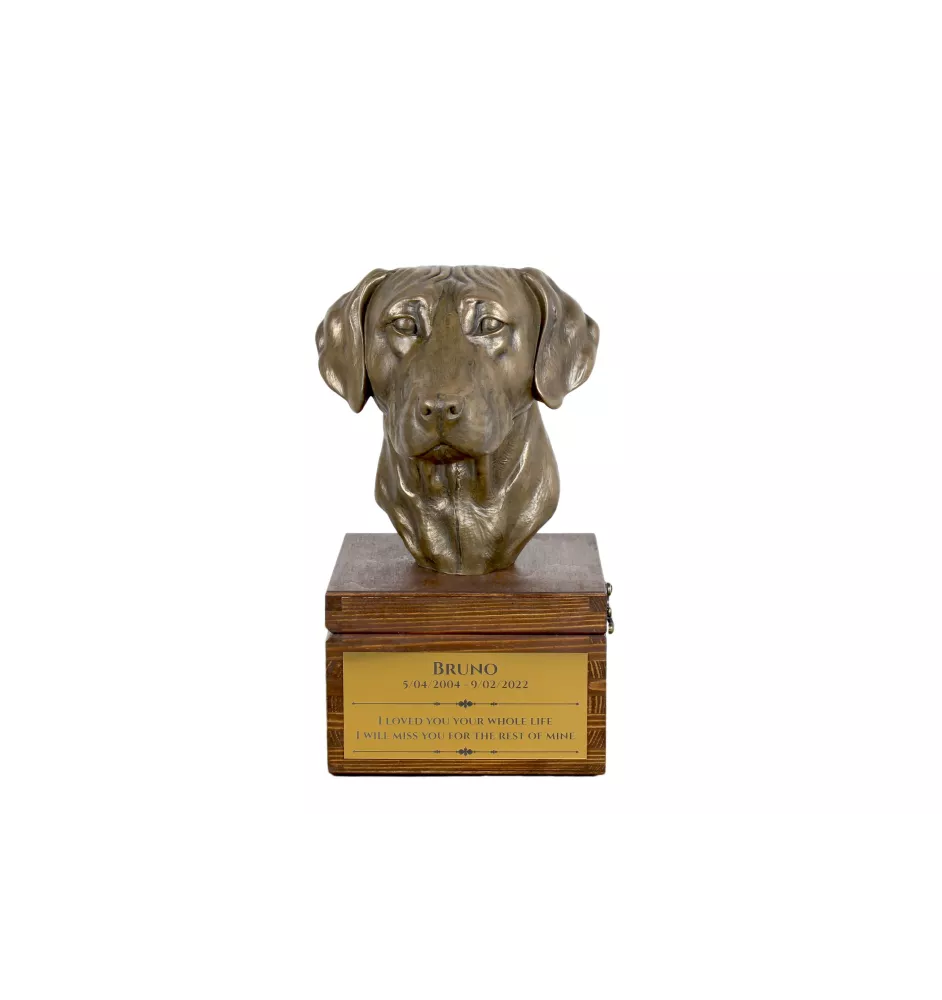 Chien de Rhodésie à crête dorsale, Rhodesian ridgeback - urne pour les cendres du chien avec une statuette, petite urne pour chien, urne personnalisée avec le buste du chien de la marque Art-Dog