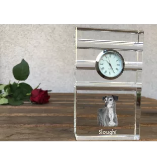 Saluki, Lévrier persan - une horloge en verre avec une photo, une photo de chien dans un cristal, une horloge de bureau personnalisée de la marque Art-Dog