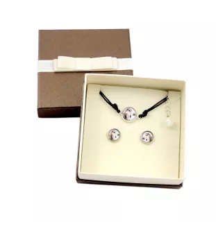 Ensemble de bijoux unique avec des photos de vos amis à quatre pattes. Fabriqué à la main avec passion et souci du détail. Boucles d'oreilles et bracelet avec des photos originales sous verre bombé et montées sur une base hypoallergénique (sans nickel) de couleur argent. Boucles d'oreilles avec tiges rondes et fermoirs, diamètre de la photo 10 mm. Bracelet sur cordon, longueur réglable avec une chaîne de 16-18,5 cm, diamètre de la photo 12 mm. La longueur du bracelet peut être ajustée sur demande. Les photos sont de haute qualité, aux couleurs vives, imprimées sur du papier photographique de haute qualité. L'ensemble est emballé dans une boîte cadeau élégante. Personnalisation GRATUITE : Si vous rêvez de bijoux uniques avec votre propre animal de compagnie, ou avec n'importe quelle autre photo, il est désormais possible de passer une commande personnalisée à partir de votre propre photo ou graphique :) Attention ! Les bijoux ne sont pas étanches. Il est recommandé de les retirer avant de nager, de prendre un bain ou d'aller au sauna. Les couleurs peuvent légèrement différer du modèle affiché en raison des différences d'affichage sur les écrans. Il est également possible de graver le dos du bracelet ou du collier de notre collection. Pour acheter le service de gravure, saisissez le numéro de l'enchère dans la barre de recherche Allegro : 12597945162. Ensemble de bijoux Briard avec votre photo dans une boîte.
