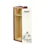 La boîte est en bois, avec un couvercle en MDF. L'impression est durable et résistante à la décoloration. Il y a une poignée pratique en corde sur le dessus de la boîte, et à l'intérieur se trouve un loquet maintenant la bouteille en place pendant le transport. La boîte est de taille standard pour une bouteille de vin.
