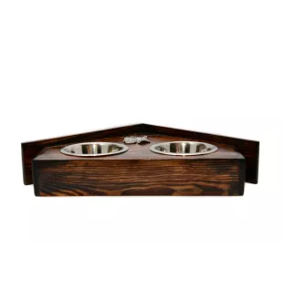 Nous présentons un support à deux bols pour chien fait à la main, qui sera certainement un élément décoratif dans n'importe quel intérieur. Fabriqué en Pologne, il est en bois massif, ce qui garantit sa durabilité et sa haute qualité. Le support a une forme amusante de niche pour chien, ce qui lui donne du charme et un caractère unique. Décoré d'une bas-relief argenté d'un chien de race, il devient non seulement fonctionnel, mais aussi un élément décoratif. Le set comprend deux bols en acier, hygiéniques et faciles à nettoyer.