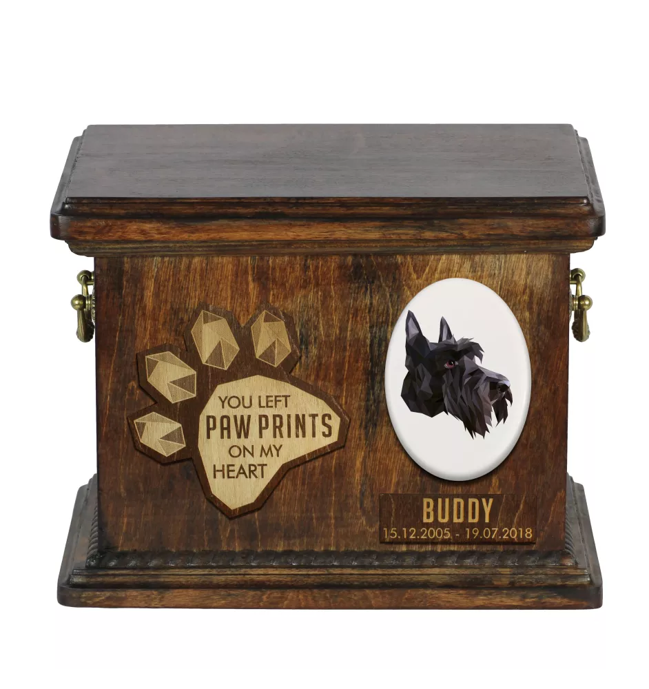 Terrier écossais, Scottish terrier - urne pour les cendres de chien, urne personnalisée avec une gravure, boîte commémorative pour les cendres de chien de la marque Art-Dog