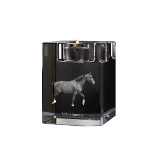 Selle Français - Bougeoir avec image d'un cheval, porte bougie en cristal, cadeau personnalisé par la marque Art-Dog