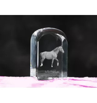 Selle Français - un cube de cristal avec une photo, une photo de cheval dans le cristal, un presse-papiers cubique de la marque Art-Dog