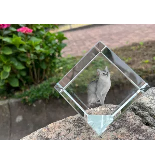 Chat Singapour - un cube en cristal avec une photo de chat, une photo de cheval dans le cristal, un presse-papiers cubique de la marque Art-Dog