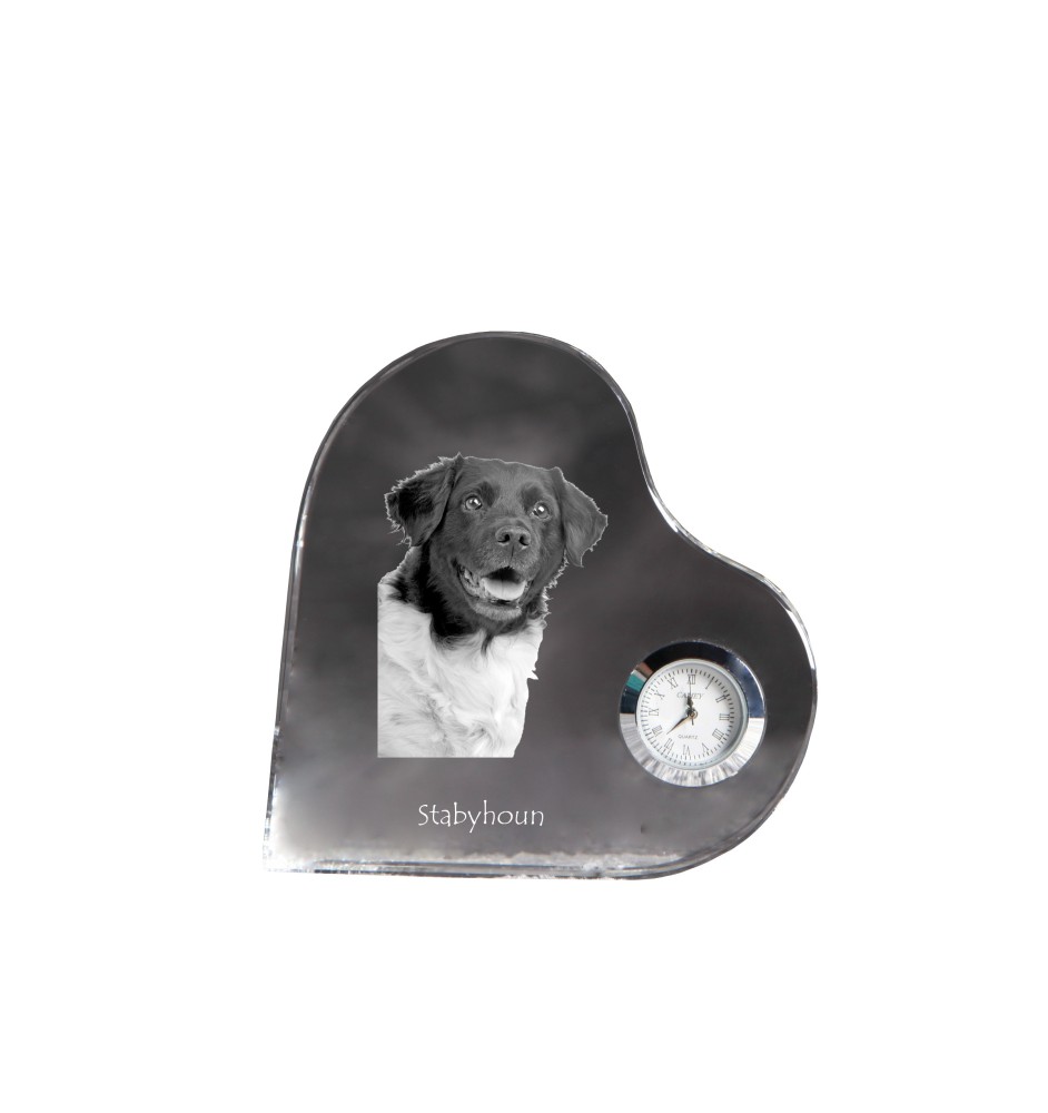 Chien d'arrêt frison, Stabyhoun - horloge en cristal avec une photo de chien, horloge de table en forme de cœur, horloge debout personnalisée de la marque Art-Dog