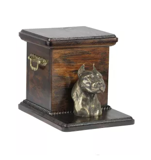 American Staffordshire Terrier, Amstaff, Am staff, Staff III - urne pour les cendres d'un chien avec une statuette, une urne élégante pour chien, une urne exceptionnelle avec un buste de chien de la m