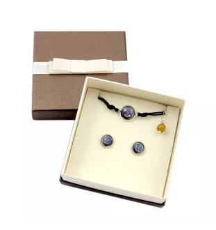Ensemble de bijoux unique avec des photos de vos amis à quatre pattes. Fabriqué à la main avec passion et souci du détail. Boucles d'oreilles et bracelet avec des photos originales sous verre bombé et montées sur une base hypoallergénique (sans nickel) de couleur argent. Boucles d'oreilles avec tiges rondes et fermoirs, diamètre de la photo 10 mm. Bracelet sur cordon, longueur réglable avec une chaîne de 16-18,5 cm, diamètre de la photo 12 mm. La longueur du bracelet peut être ajustée sur demande. Les photos sont de haute qualité, aux couleurs vives, imprimées sur du papier photographique de haute qualité. L'ensemble est emballé dans une boîte cadeau élégante. Personnalisation GRATUITE : Si vous rêvez de bijoux uniques avec votre propre animal de compagnie, ou avec n'importe quelle autre photo, il est désormais possible de passer une commande personnalisée à partir de votre propre photo ou graphique :) Attention ! Les bijoux ne sont pas étanches. Il est recommandé de les retirer avant de nager, de prendre un bain ou d'aller au sauna. Les couleurs peuvent légèrement différer du modèle affiché en raison des différences d'affichage sur les écrans. Il est également possible de graver le dos du bracelet ou du collier de notre collection. Pour acheter le service de gravure, saisissez le numéro de l'enchère dans la barre de recherche Allegro : 12597945162. Ensemble de bijoux Briard avec votre photo dans une boîte.
