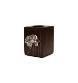 Terrier Tchèque, Cesky Terrier - bougeoir en bois avec un chien, un souvenir unique après la perte d'un chien, une œuvre artisanale de la marque Art-Dog