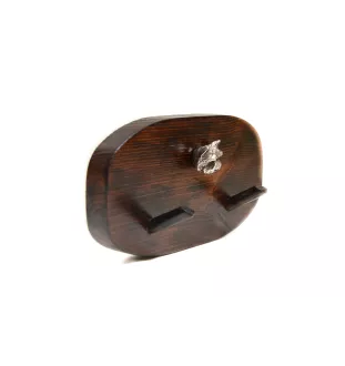 Ce porte-chien en bois est un accessoire unique fabriqué à la main, conçu pour ajouter fonctionnalité et élégance à un intérieur. Le style classique s'exprime dans la combinaison du bois de pin et du relief du chien, plaqué argent et travaillé de manière complexe. Le cintre peut être utilisé comme un cintre traditionnel, mais aussi comme un porte-laisse et d'autres accessoires pour chiens, comme un présentoir pour les médailles gagnées lors d'une exposition canine ou comme un crochet pour les clés. Son utilisation polyvalente parle d'elle-même - il s'agit d'un cadeau vraiment pratique pour tout amoureux des chiens !