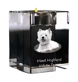 West Highland White Terrier, Westie - Bougeoir avec photo de chien, porte bougie en cristal, cadeau personnalisé par la marque Art-Dog