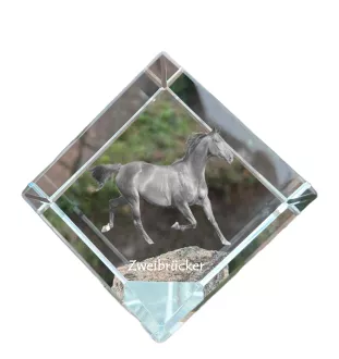 Zweibrücker - un cube de cristal avec une photo de cheval, une photo de cheval dans le cristal, un presse-papiers cubique de la marque Art-Dog