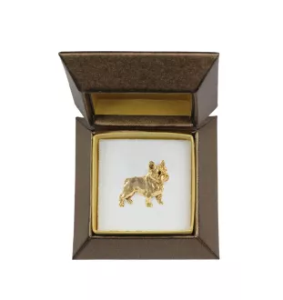 Francuski Buldog to mała rasa znana z dużych "nietoperzowatych" uszu i muskularnej sylwetki. Mimo swojego wyglądu twardziela, Francuziki są bardzo przyjacielskie i lojalne wobec swoich właścicieli. Ich krótka sierść jest łatwa w pielęgnacji, ale rasa ta może cierpieć na problemy zdrowotne związane z krótkim pyskiem. Francuskie Buldogi są doskonałe dla rodzin, które mogą zapewnić im dużo towarzystwa i nie wymagają od psa intensywnej aktywności fizycznej. Zapraszamy do odkrycia naszej ekskluzywnej kolekcji akcesoriów dla miłośników psów, które znajdą Państwo wyłącznie w naszym sklepie. Nasz asortyment charakteryzuje się różnorodnością eleganckich i praktycznych produktów, które celebrują indywidualność każdego psa. W ofercie mamy zarówno drobne upominki jak zawieszki, przypinki, spinki czy naszyjniki, jak i wyjątkowe figurki umieszczone na podstawach z drewna lub marmuru. Dodatkowo proponujemy figurki wiszące, kołatki do drzwi w unikatowym stylu, artystyczne lampy oraz realistyczne statuetki psów w pełnej skali 1:1. Dostępne są również urny oraz rzeźby głów psów, a także produkty wykonane z najwyższej jakości kryształu i materiałów sublimacyjnych. Każdy produkt jest wykonany z najlepszych dostępnych materiałów, takich jak marmur, złoto, srebro, żywica czy stop ZnAl, zapewniając ich trwałość i ekskluzywny wygląd. Nasze produkty idealnie sprawdzą się jako wyjątkowe dodatki do domu czy osobiste upominki dla każdego, kto ceni sobie towarzystwo psów. Niezależnie od tego, czy poszukują Państwo prezentu, czy elementu, który nada charakteru wnętrzu, nasza starannie dobrana kolekcja spełni oczekiwania najbardziej wymagających klientów. Serdecznie zapraszamy do zapoznania się z naszym regularnie aktualizowanym asortymentem, który oferuje nowości zgodne z najnowszymi trendami w designie i jakości. Odkryj z nami, jak wyjątkowo można wyrazić swoje zamiłowanie do psów, wybierając produkty, które doskonale oddają ducha i charakter tych wspaniałych zwierząt. Odkryj majestat i urok naszej kolekcji, dedykowanej miłośnikom psów, w której każda ręcznie wykonana kreacja artystyczna w hołdzie dla psiaków jest tak wyjątkowa, jak ich niezliczone rasy. Wykorzystując wyłącznie wybrane, najwyższej klasy materiały - od ekskluzywnych rodzajów drewna po wytrzymałe stopowe metale - tworzymy nie tylko wytrzymałe, ale i olśniewające przedmioty, które oddają ducha psiej wierności i uroku. Majsterkowanie każdej statuetki, breloka i naszyjnika odbywa się w zgodzie z tradycyjnym rzemiosłem, ukazując unikalne cechy każdej rasy, od beztroskiego wyglądu bulldoga po wzniosłą posturę dobermana. Wnikliwy proces rzeźbienia i kunsztowne detale są dopełnione przez staranne wykończenie, które za pomocą malowania i texturyzacji, przekształca drewno i metal w żywe portrety o niepowtarzalnym charakterze. Każdy element naszej kolekcji to rękodzielniczy majstersztyk, który przemawia do serca, opowiadając historię nie tylko rasy, ale i pojedynczego stworzenia. Wybierając jeden z naszych psich towarzyszy, przynosicie do domu nie tylko element ozdobny, ale kawałek rzemieślniczej duszy, który oddaje uczucia i osobowość towarzyszących nam czworonogów. Inwestując w naszą kolekcję, wspierasz nie tylko lokalne rzemiosło, ale również dokonujesz wyboru, który odzwierciedla głębokie więzi międzygatunkowe, oferując coś więcej niż ozdoba - każdy przedmiot jest sentymentalnym symbolem i osobistym hołdem dla naszych wiernych przyjaciół.