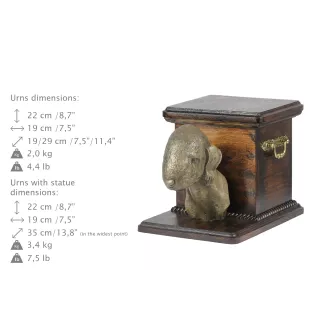 Bedlington Terrier urna wykonana z drewna z psem Art-Dog