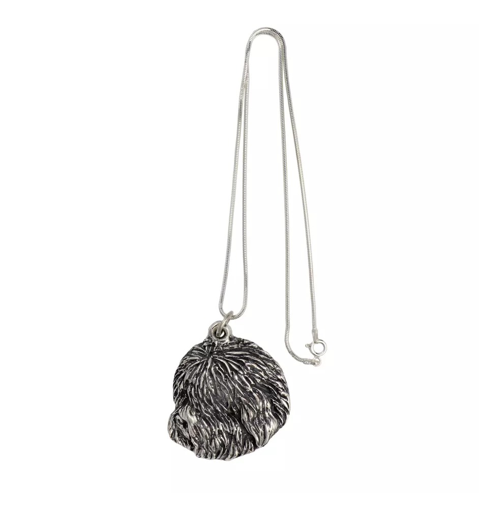 Naszyjnik z psem to doskonały wybór dla fana psów, poszukującego unikatowej biżuterii. Wyjątkowo precyzyjne wykonanie oraz dbałość o detale to cechy charakteryzujące nasze zawieszki, tworzone ręcznie przez najlepszego polskiego artystę. Produkt wykonany z wysokiej jakości stopu cynku i aluminium, gwarantujący trwałość i odporność na uszkodzenia, zapewnia długotrwałą przyjemność z noszenia biżuterii. Srebrna powłoka medalionu zapewnia komfort noszenia nawet dla osób z wrażliwą skórą. Nasz wyjątkowy wisiorek zawieszony jest na srebrnym łańcuszku typu żmijka. Jest to unikatowa i efektowna ozdoba odpowiednia dla każdej psiej mamy.
