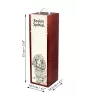 Pudełko wykonane jest z drewna, a jego pokrywa z MDF. Nadruk jest trwały i odporny na blaknięcie. Na górze pudełka jest wygodny uchwyt ze sznurka, a w środku znajduje się zasuwka przytrzymująca butelkę w odpowiednim miejscu podczas niesienia. Pudełko ma rozmiar dopasowany do standardowej butelki wina.