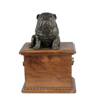 Wykonana ręcznie urna z drewna brzozowego, cechuje się klasycznym wzornictwem i ozdobiona jest estetycznymi wieńcami. Wyposażona jest w wygodne, mosiężne uchwyty. Elegancka statuetka w postaci siedzącego psa, wykonana z wysokiej jakości żywicy, łączy w sobie urok i styl. Trwale zamocowana do wieczka urny figurka nada jej niepowtarzalnego wdzięku, czyniąc urnę tym samym nie tylko pięknym miejscem spoczynku dla Twojego czworonoga, ale także wyjątkową ozdobą Twojego domu.