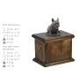 Wykonana ręcznie urna z drewna brzozowego, ozdobiona jest estetycznymi wieńcami, a jej centralnym miejscem jest statuetka z podobizną psa. Figurka jest trwale zamocowana do zdejmowalnej pokrywy. Urna wyposażona jest w wygodne, mosiężne uchwyty.