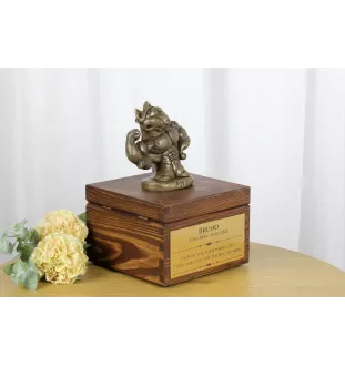 Drewniana urna wykonana została z drewna brzozowego, dzięki czemu jest trwała i trwała. Urna posiada eleganckie zapięcie oraz blaszkę w kolorze złotym z czarnym grawerem. Spód pudełka wykończony jest filcowymi pierścieniami, dzięki czemu urna nie porysuje mebli podczas przenoszenia. Figurka psa wykonana jest z brązu odlewanego na zimno, co pozwala zachować wygląd i trwałość brązu, jednocześnie obniżając cenę i wagę figurki. Klasyczny styl Urns sprawia, że jest ponadczasowy.
