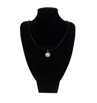 Wysokiej jakości zdjęcie umieszczone jest pod wypukłym szkłem. Okrągła zawieszka wykonana jest z antyalergicznego materiału w kolorze srebra, bez dodatku niklu. Zawieszka zamocowana jest na naturalnym rzemieniu.