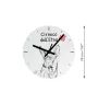 Tarcza zegara wykonana jest z płyty MDF, na którą nanosimy trwały, odporny na blaknięcie nadruk. Klasyczne wskazówki z łatwością pozwolą odczytać godzinę. Tykający mechanizm zegara ma uchwyt do powieszenia produktu na ścianie, a w komplecie dołączamy też podstawkę, która umożliwi postawienie zegara na półce. Jest więc to produkt uniwersalny, który doskonale odnajdzie się w każdym wnętrzu. W zestawie nie ma baterii.