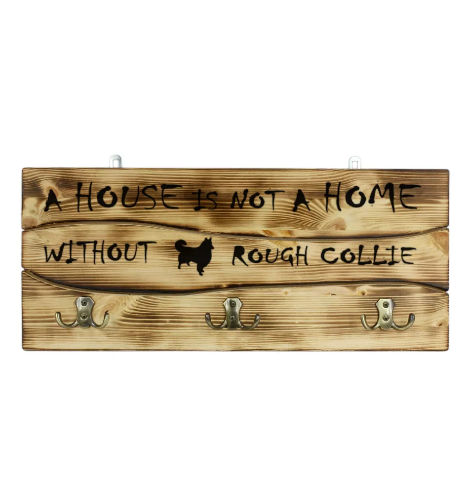 Wieszak wyposażony jest w sześć solidnych haczyków, idealnych do zawieszenia kurtek, a także do eksponowania medali z wystaw psów lub jako praktyczny wieszak na psie akcesoria, takie jak smycze. Jego unikalny wygląd uzupełnia namalowany napis "A house is not a home without ..." z sylwetką psa i nazwą rasy, co czyni go wyjątkowym dodatkiem dla każdego miłośnika czworonogów. W ofercie mamy wieszaki z blisko 200 różnymi rasami psów.