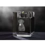 Pragniemy zaoferować niezwykłą dekorację domu - grawerowany kryształ z wizerunkiem ulubionego zwierzaka. Wybierz jedną z wielu dostępnych ras psów, kotów oraz koni, lub przyślij nam zdjęcie Twojego pupila. Pozwól nam zaskoczyć Cię niezwykłą precyzją wykonania! Te wyjątkowe świeczniki to czyste kryształy z wysokiej jakości grawerem wewnątrz. Wymiary kryształu to 6x6 cm, a jego wysokość to 8 cm. Otwór jest odpowiedni na typową świeczkę typu tealight.