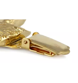 Wielbicielom eleganckich akcesoriów oraz miłośnikom psów z pewnością przypadnie do gustu nasza pozłacana broszka z klipsem, idealna do eksponowania numeru startowego na zawodach sportowych czy wystawach psów. Ta wyjątkowa przypinka z realistycznym wizerunkiem psa rasowego to nie tylko praktyczny, ale i stylowy dodatek.