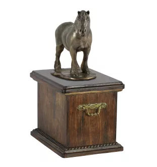 Koń belgijski urna na drewnie z statuetką konia Art-Dog
