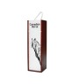 Pudełko wykonane jest z drewna, a jego pokrywa z MDF. Nadruk jest trwały i odporny na blaknięcie. Na górze pudełka jest wygodny uchwyt ze sznurka, a w środku znajduje się zasuwka przytrzymująca butelkę w odpowiednim miejscu podczas niesienia. Pudełko ma rozmiar dopasowany do standardowej butelki wina.
