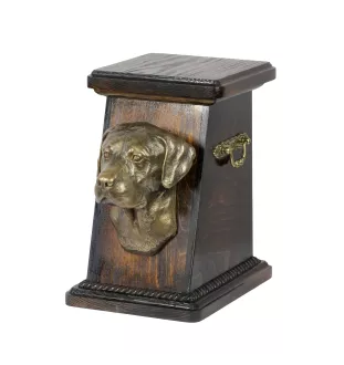 Klasyczna urna na prochy psa, wykonana ręcznie z drewna brzozowego, łączy w sobie elegancję i trwałość. Wyposażona w solidne, mosiężne uchwyty oraz ozdobiona misternie wykonanym drewnianym wieńcem, stanowi nie tylko miejsce spoczynku dla ukochanego pupila, ale także wyjątkowy element dekoracyjny. Na froncie urny znajduje się realistyczne popiersie psa, starannie wyrzeźbione z dbałością o każdy szczegół, co nadaje całości wyjątkowego charakteru. Ta elegancka urna będzie piękną ozdobą każdego wnętrza, jednocześnie pełniąc swoją funkcję z godnością i szacunkiem.