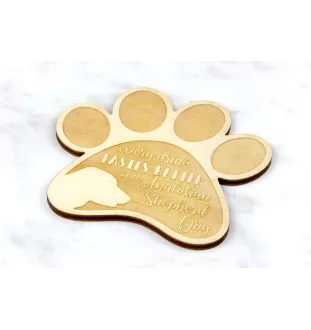 Ten produkt możemy spersonalizować - w zamian za nazwę rasy możemy wygrawerować imię psa.