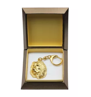 Brelok w ozdobnym pudełku prezentowym sprawdzi się jako wyjątkowy upominek dla bliskiej osoby. Nasze wysokiej klasy breloczki wykonane są przez polskiego artystę z dbałością o detale i typowe cechy rasy psa. Metalowy brelok jest bardzo trwały, a dzięki temu że pokryty jest warstwą złota jest również elegancki i luksusowy. Sprawdzi się nie tylko jako przywieszka do kluczy, ale też jako unikatowa ozdoba torebki czy plecaka. Produkt jest nie tylko praktycznym gadżetem, ale również wyjątkowym akcesorium, które zawsze przyciąga spojrzenia miłośników psów. Wyposażony jest w wygodne i łatwe w obsłudze zapięcie, gwarantujące że brelok nie odczepi się samoczynnie.