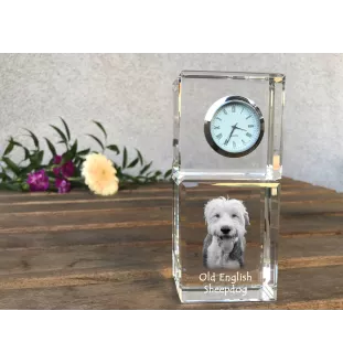 Owczarek staroangielski zegar kryształowy z psem Art-Dog