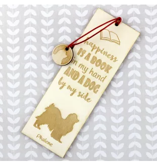 W tej ofercie kupujesz zakładkę z napisem "happiness is a book in my hand and a dog by my side". Zakładkę z cytatem, widoczną na ostatnim zdjęciu, znajdziesz wśród pozostałych produktów w naszym sklepie.
