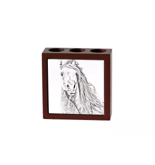 Przedstawiamy wyjątkowy drewniany stojak na długopisy, który doskonale sprawdzi się na każdym biurku. Ten stylowy gadżet biurowy posiada trzy otwory na długopisy, zapewniając porządek i łatwy dostęp do Twoich ulubionych przyborów do pisania. Centralnym elementem stojaka jest ceramiczna płytka z nadrukiem, który można w pełni spersonalizować. W ofercie prezentujemy grafiki psów, kotów oraz koni, ale z chęcią nadrukujemy zdjęcie Twojego pupila! Jeśli chcesz możemy również umieścić jego imię. Zdjęcie możemy utrwalić w kolorze lub w wersji "szkic ołówkiem", czyli takiej jaką widzisz na zdjęciach w tej ofercie.