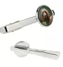 Wysokiej jakości zdjęcie umieszczone jest pod wypukłym szkłem. Spinka wykonana jest z metalu w kolorze srebra, bez dodatku niklu.