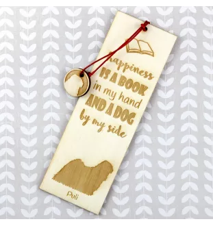 W tej ofercie kupujesz zakładkę z napisem "happiness is a book in my hand and a dog by my side". Zakładkę z cytatem, widoczną na ostatnim zdjęciu, znajdziesz wśród pozostałych produktów w naszym sklepie.