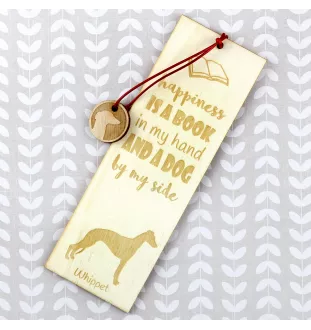 W tej ofercie kupujesz zakładkę z napisem "happiness is a book in my hand and a dog by my side". Zakładkę z cytatem, widoczną na ostatnim zdjęciu, znajdziesz wśród pozostałych produktów w naszym sklepie.