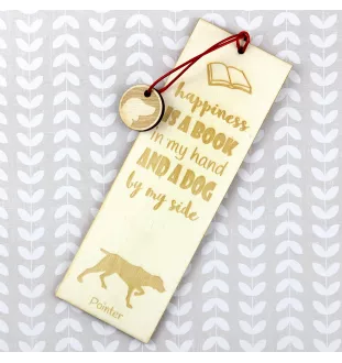 W tej ofercie kupujesz zakładkę z napisem "happiness is a book in my hand and a dog by my side". Zakładkę z cytatem, widoczną na ostatnim zdjęciu, znajdziesz wśród pozostałych produktów w naszym sklepie.