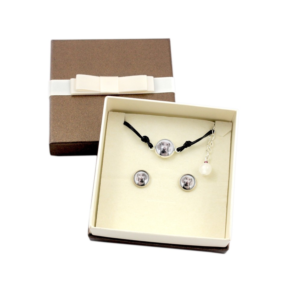 Wyżeł weimarski bransoletka i kolczyki ze zdjęciem Art-Dog